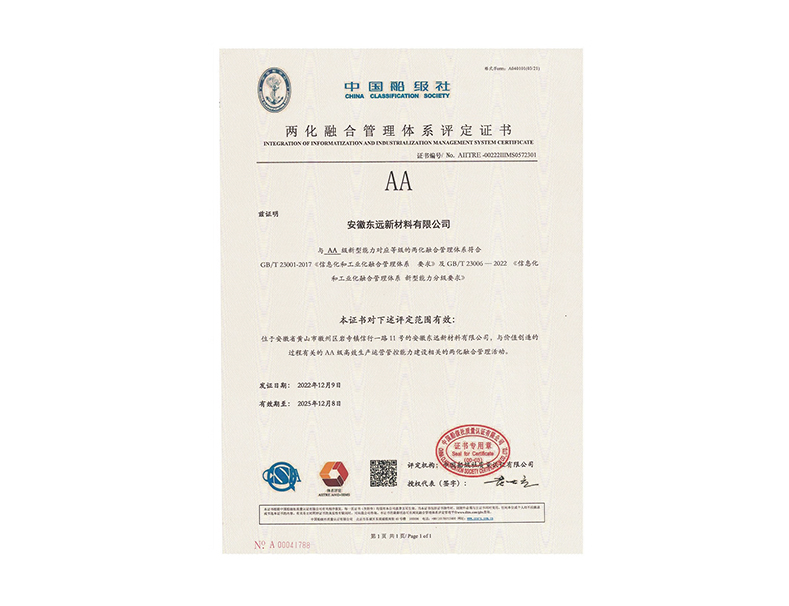 AA级两化融合管理体系评定证书